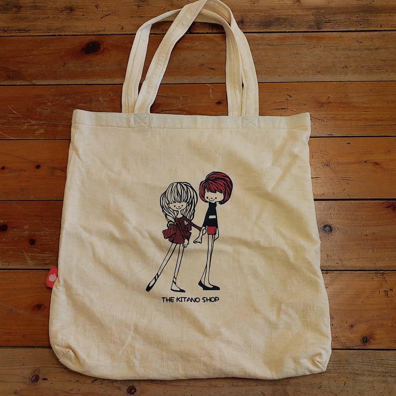 キタノショップオリジナルプリントのトートバッグ。レトロな女の子が何とも言えず可愛い。