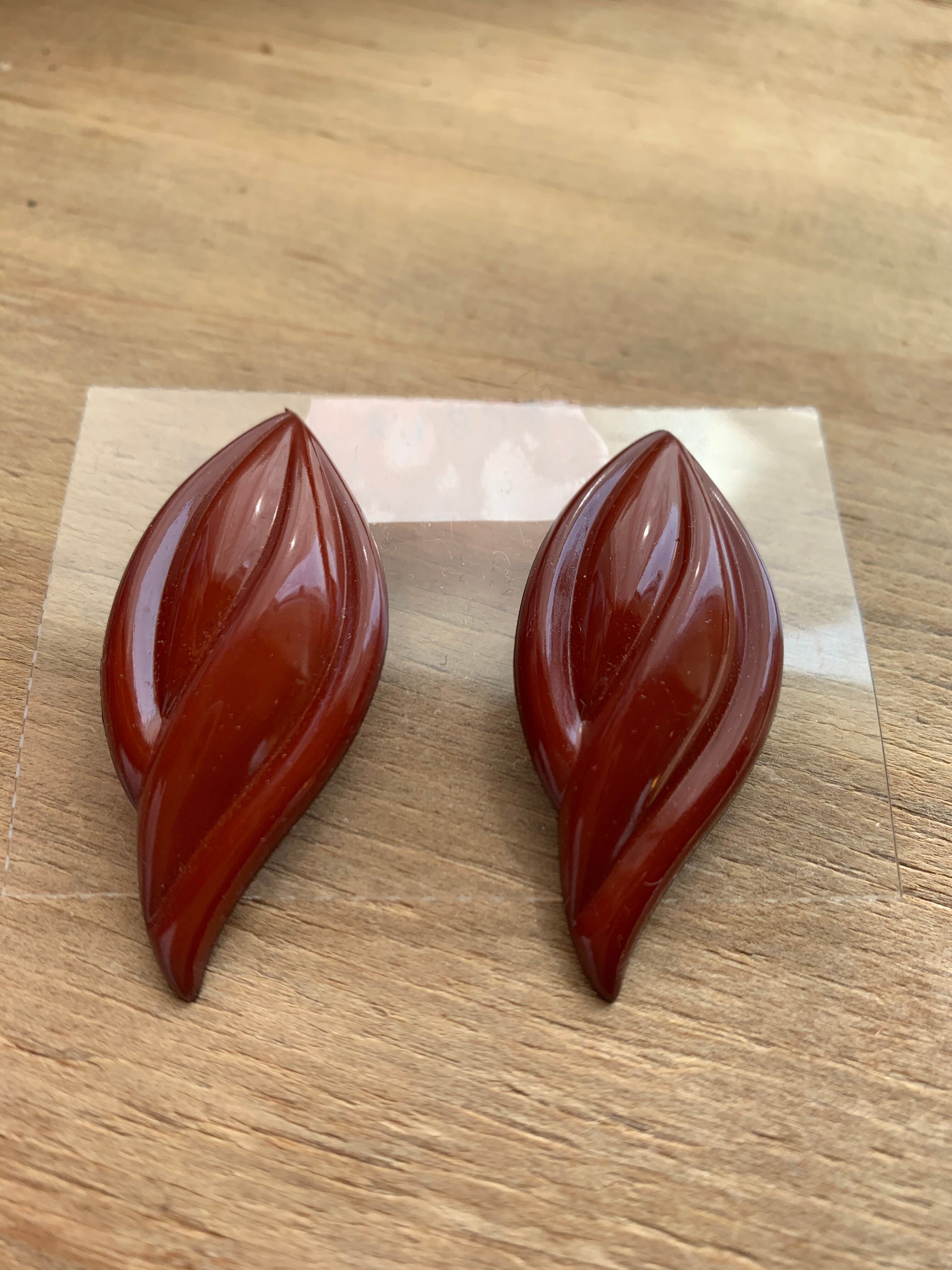 パリ 赤茶イヤリング
