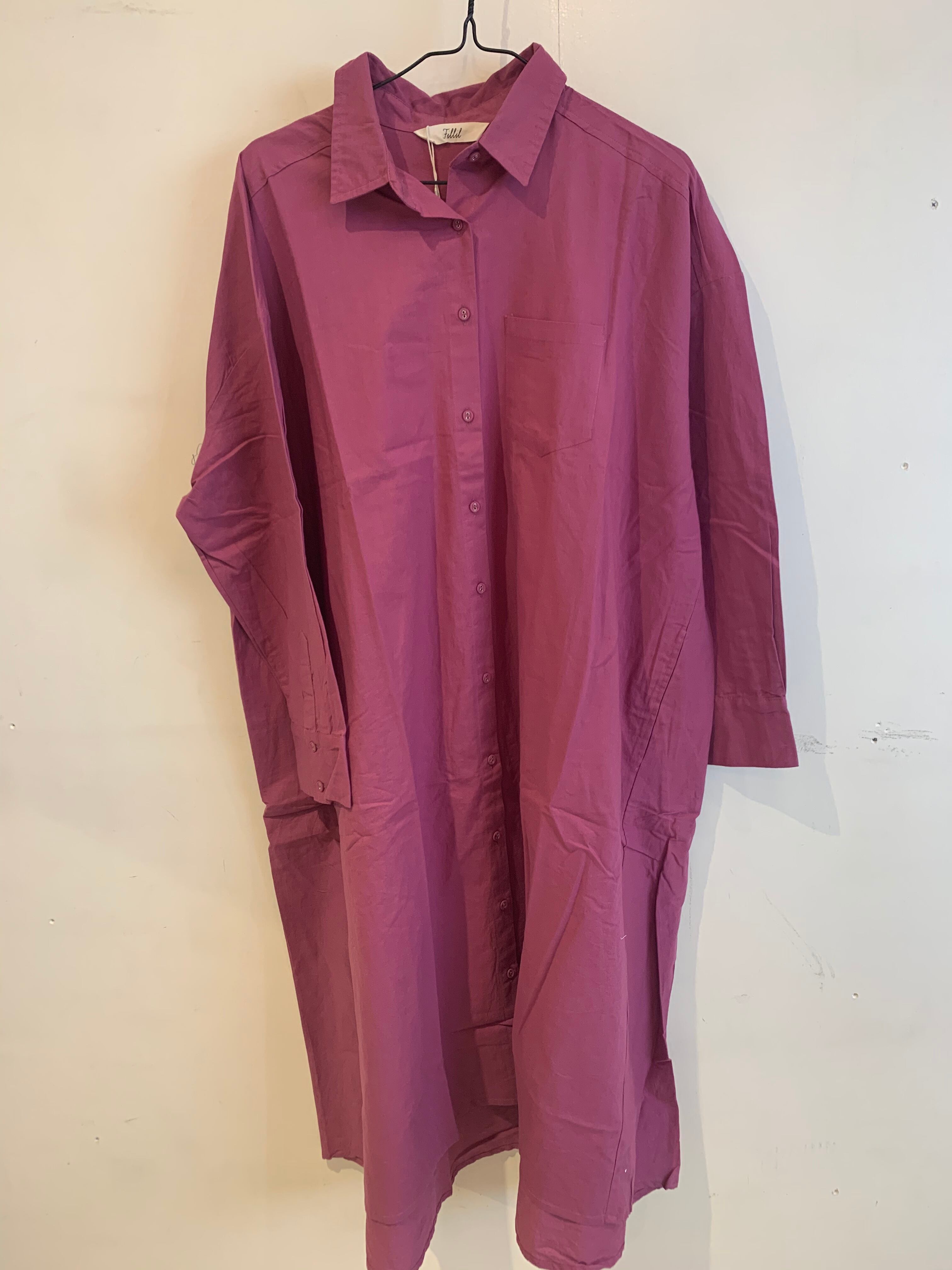 シンプルなシャツワンピースは誰にも似合うアイテム。