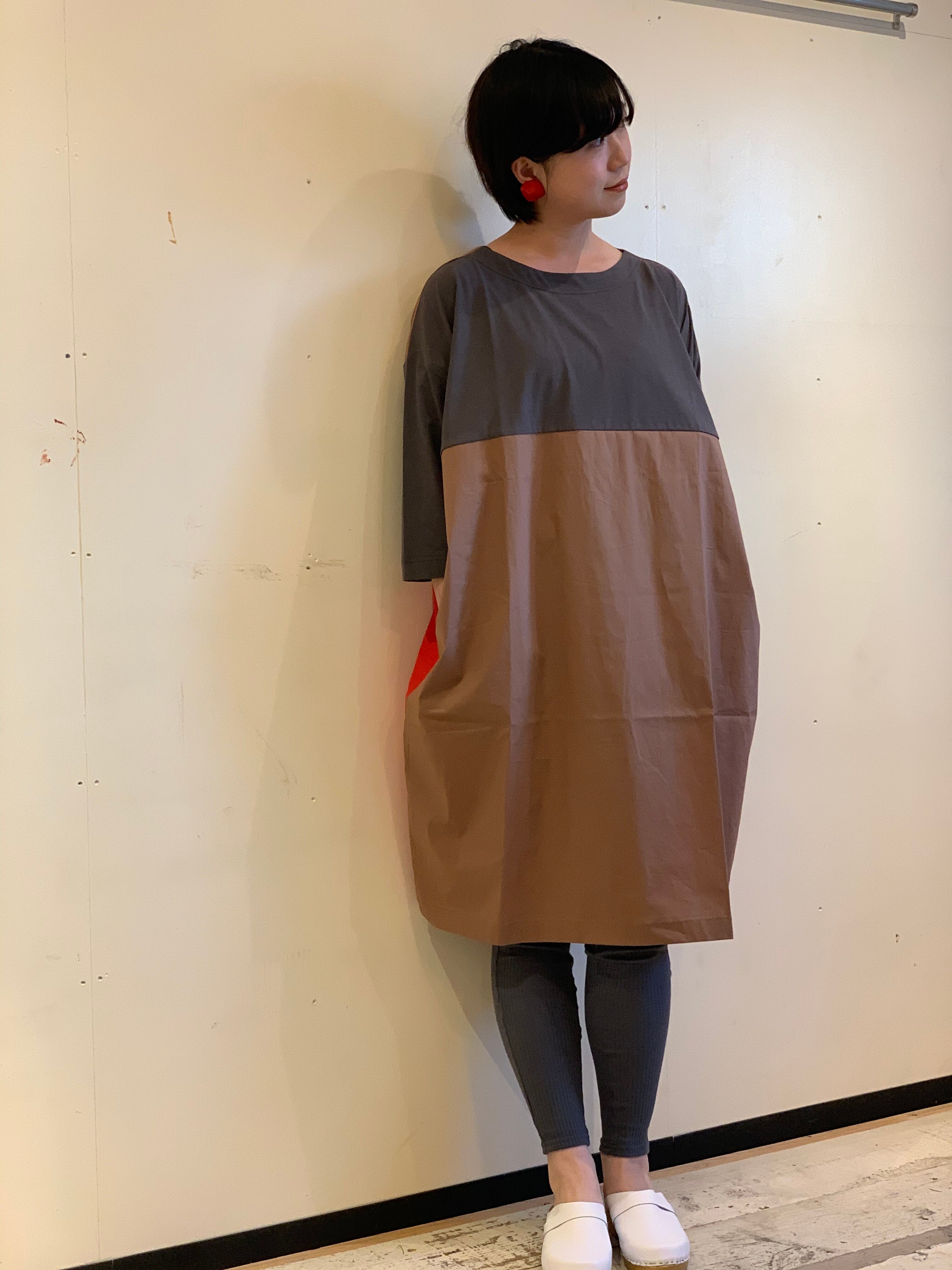生地と色が切り替わっている、いわゆるコクーンタイプの形のとてもおしゃれなワンピース。