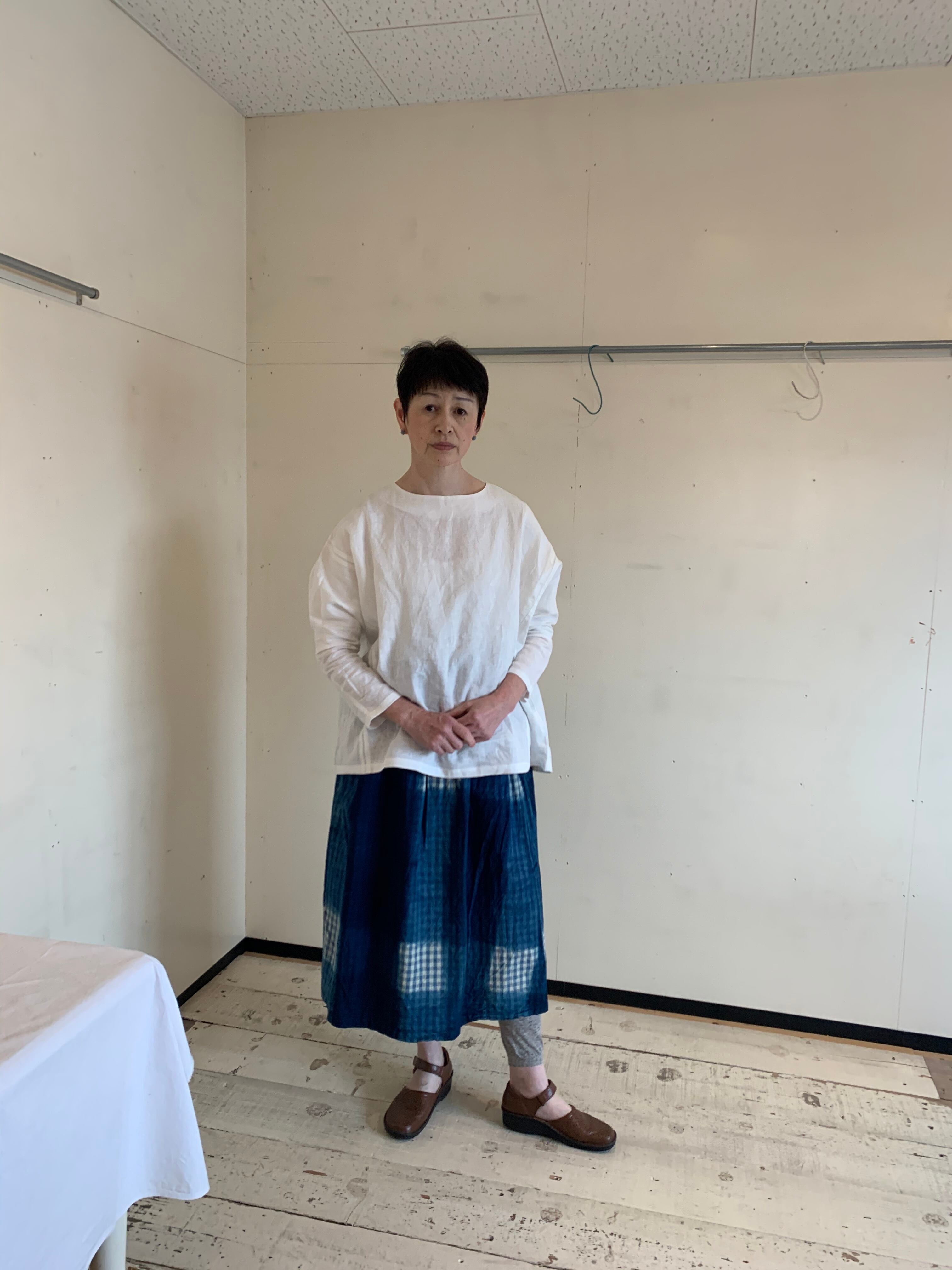 ギンガムチェックにインディゴ染めを施すという、アート感溢れる生地を使っています。