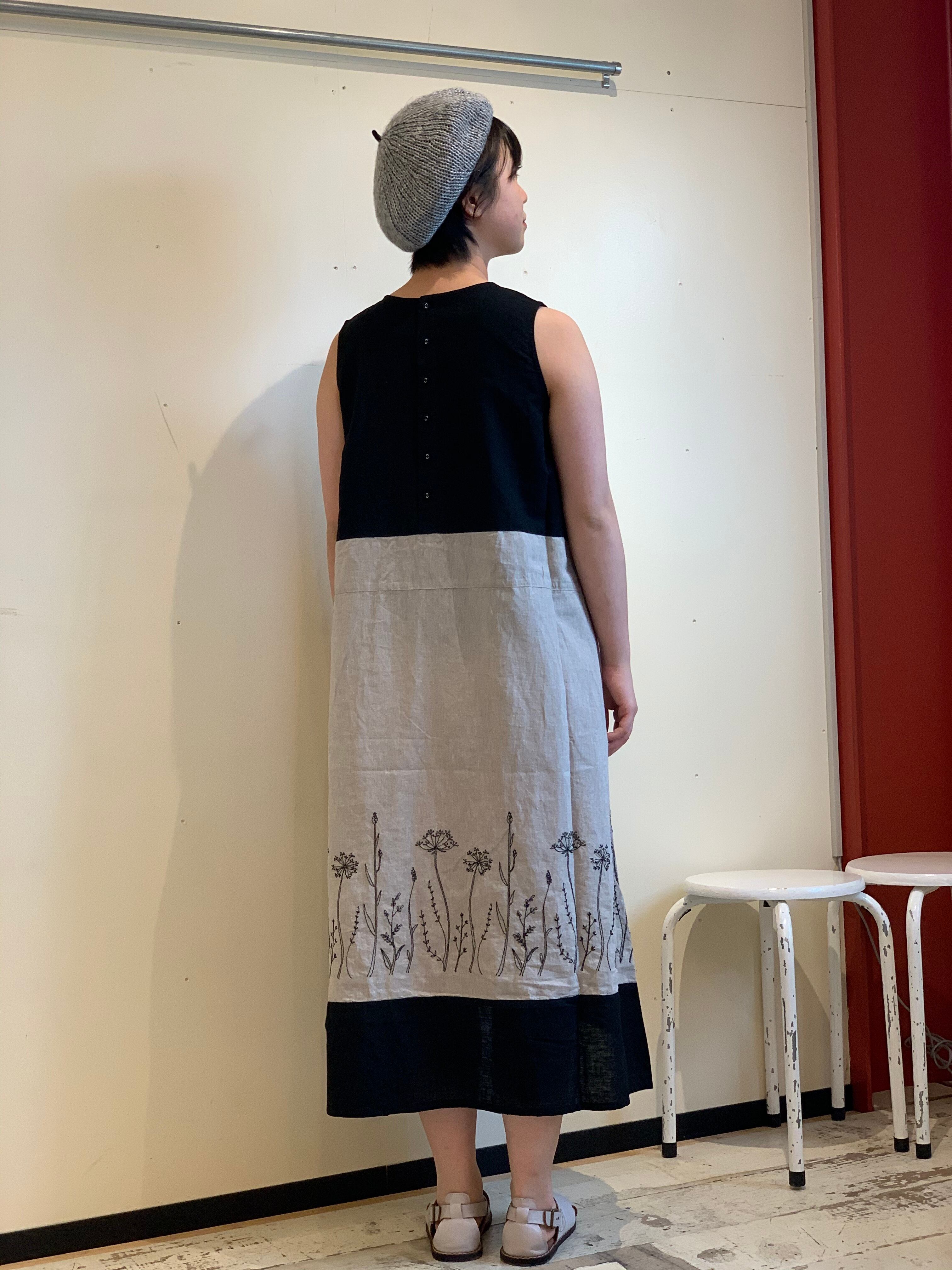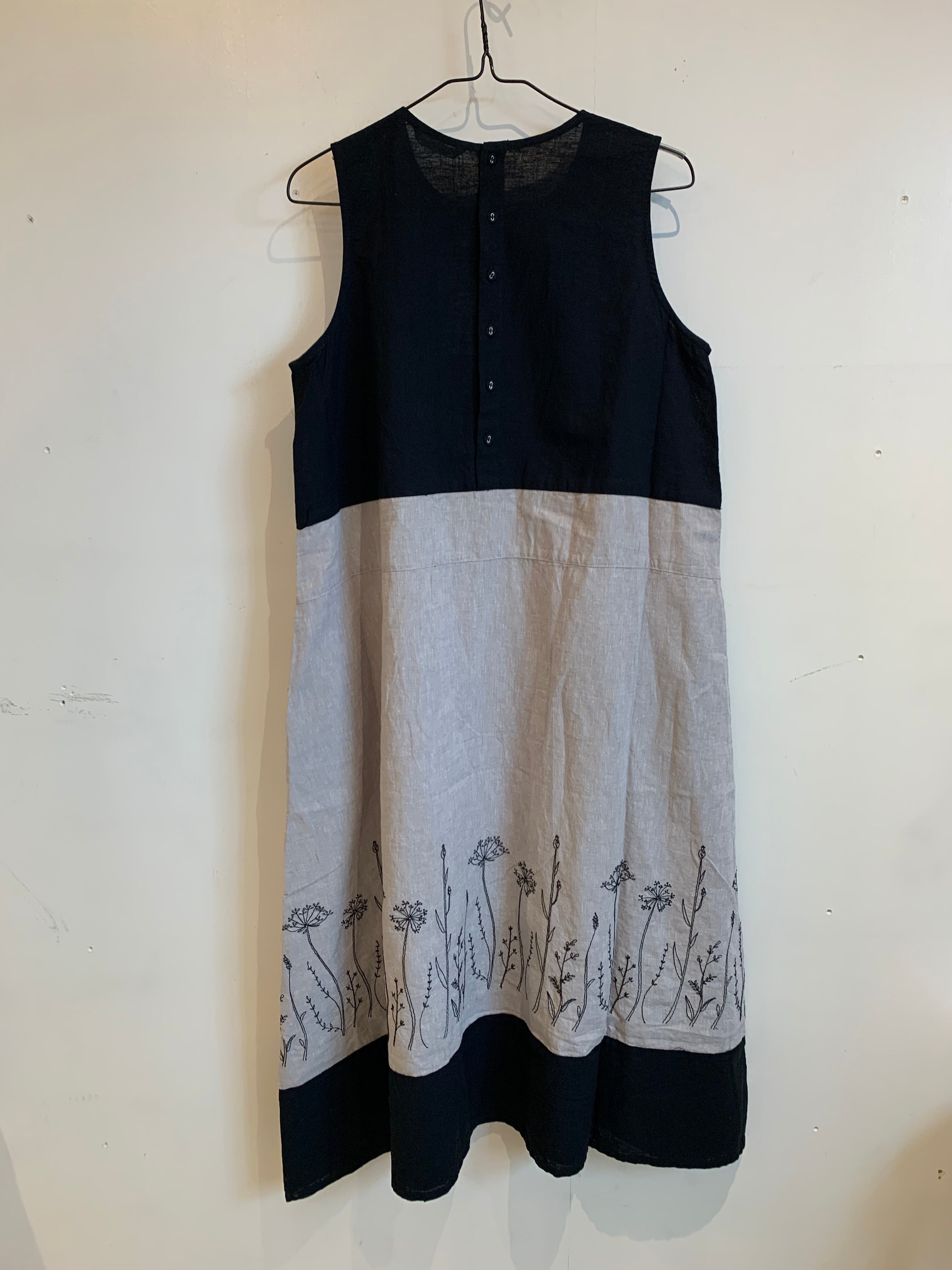 blue willow 刺繍ノースリーブワンピース