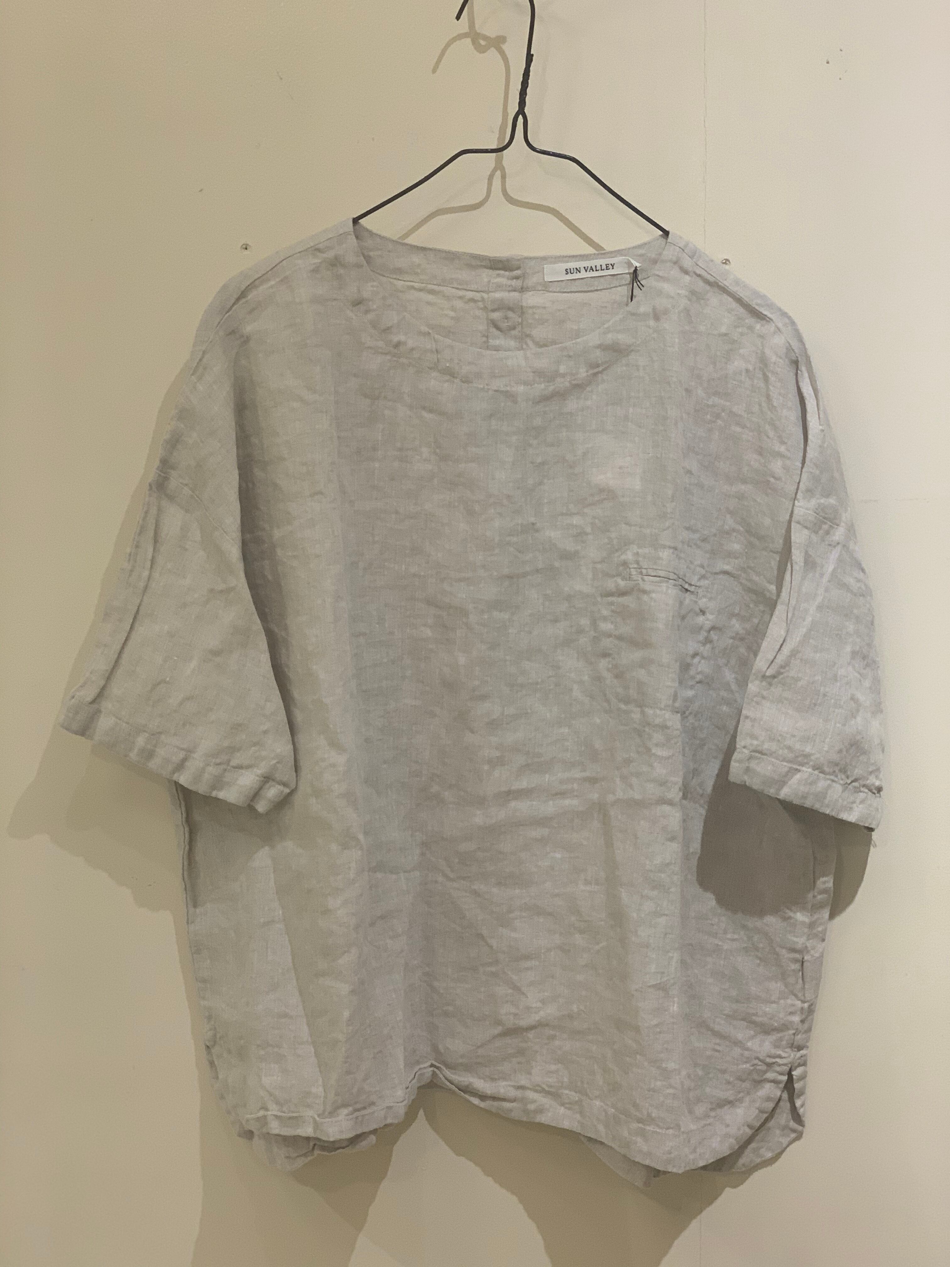 フレンチリネンの肌触りが心地良いプルオーバーブラウス。あらゆるボトムスと相性がいいです。