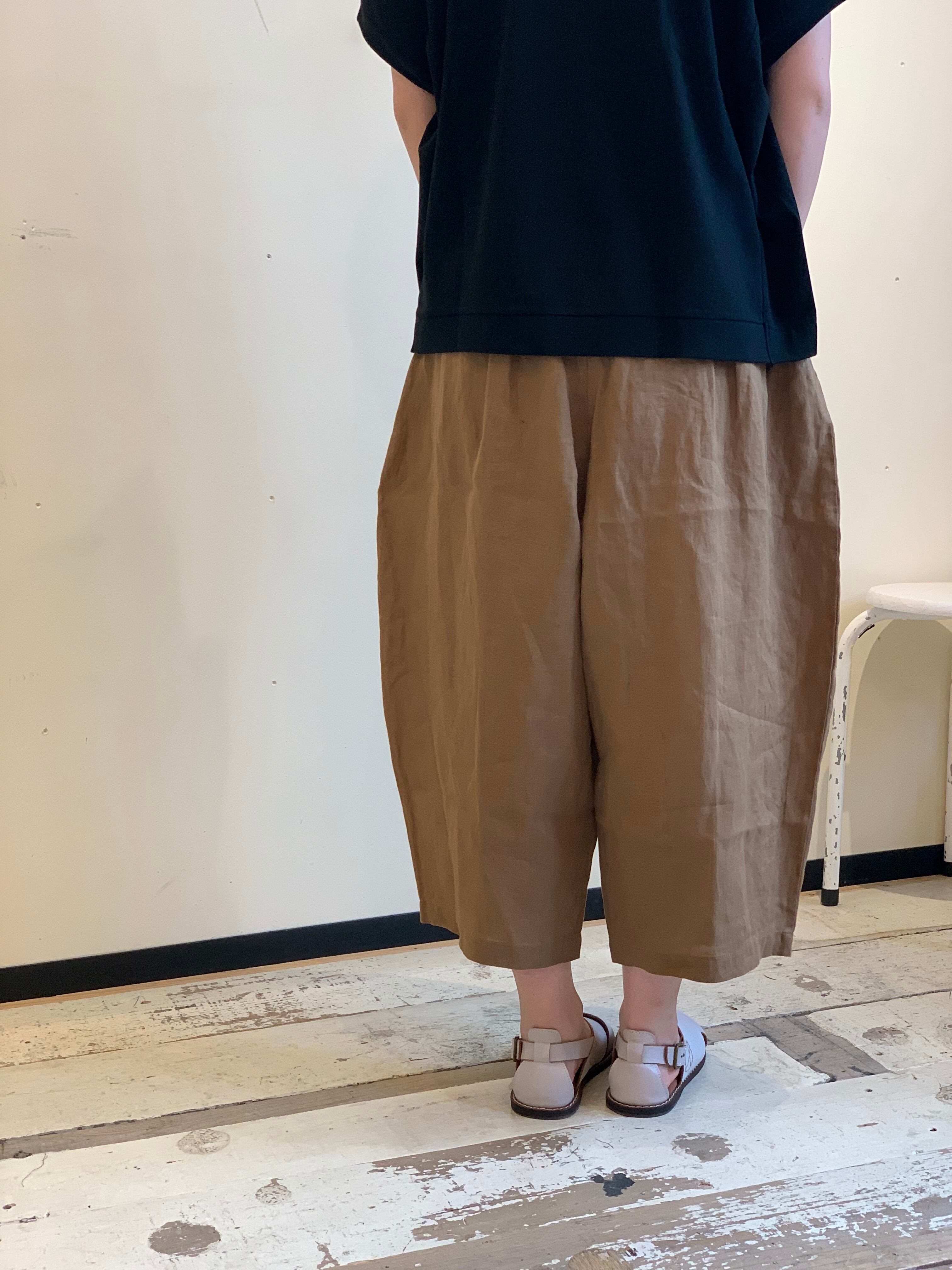 とても軽く涼しい生地。夏らしく短めの丈です。少しボリュームのある幅がオシャレです。