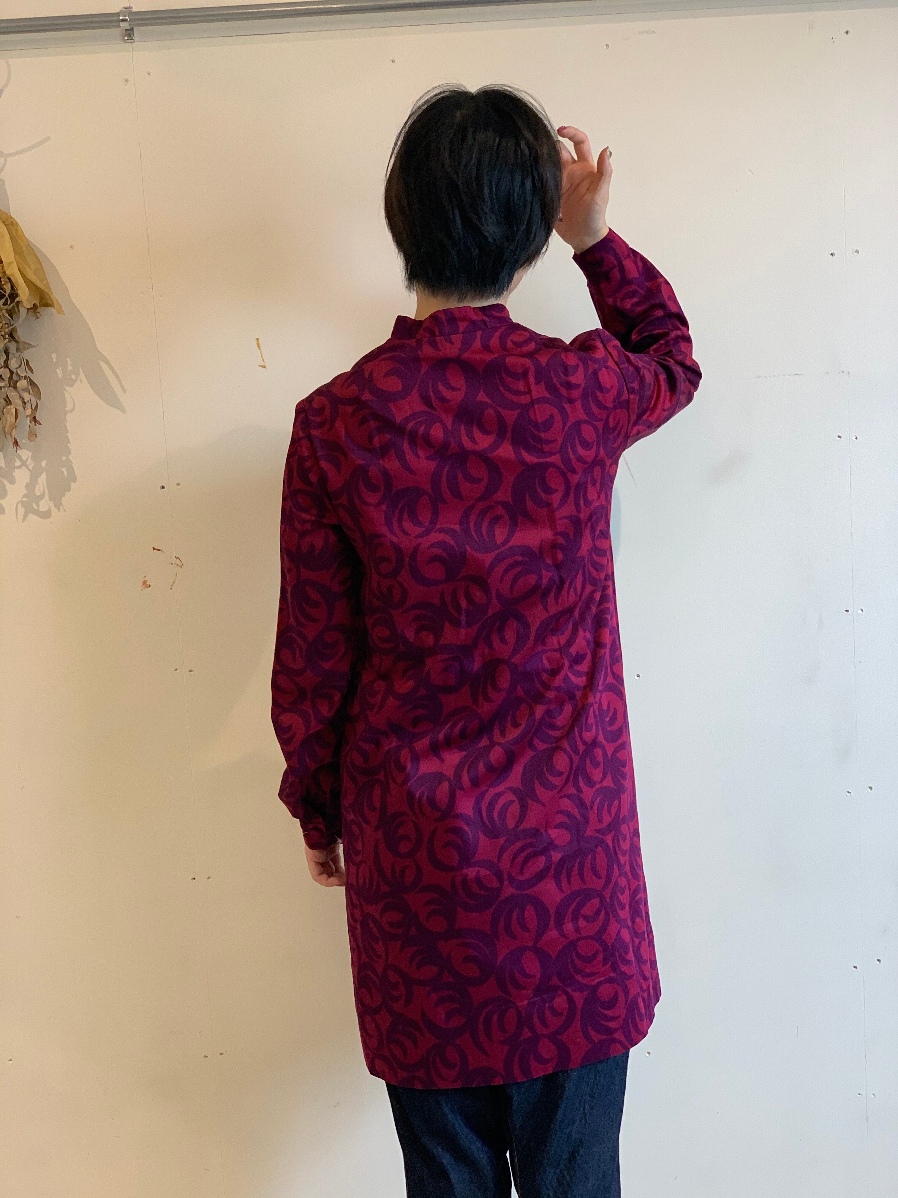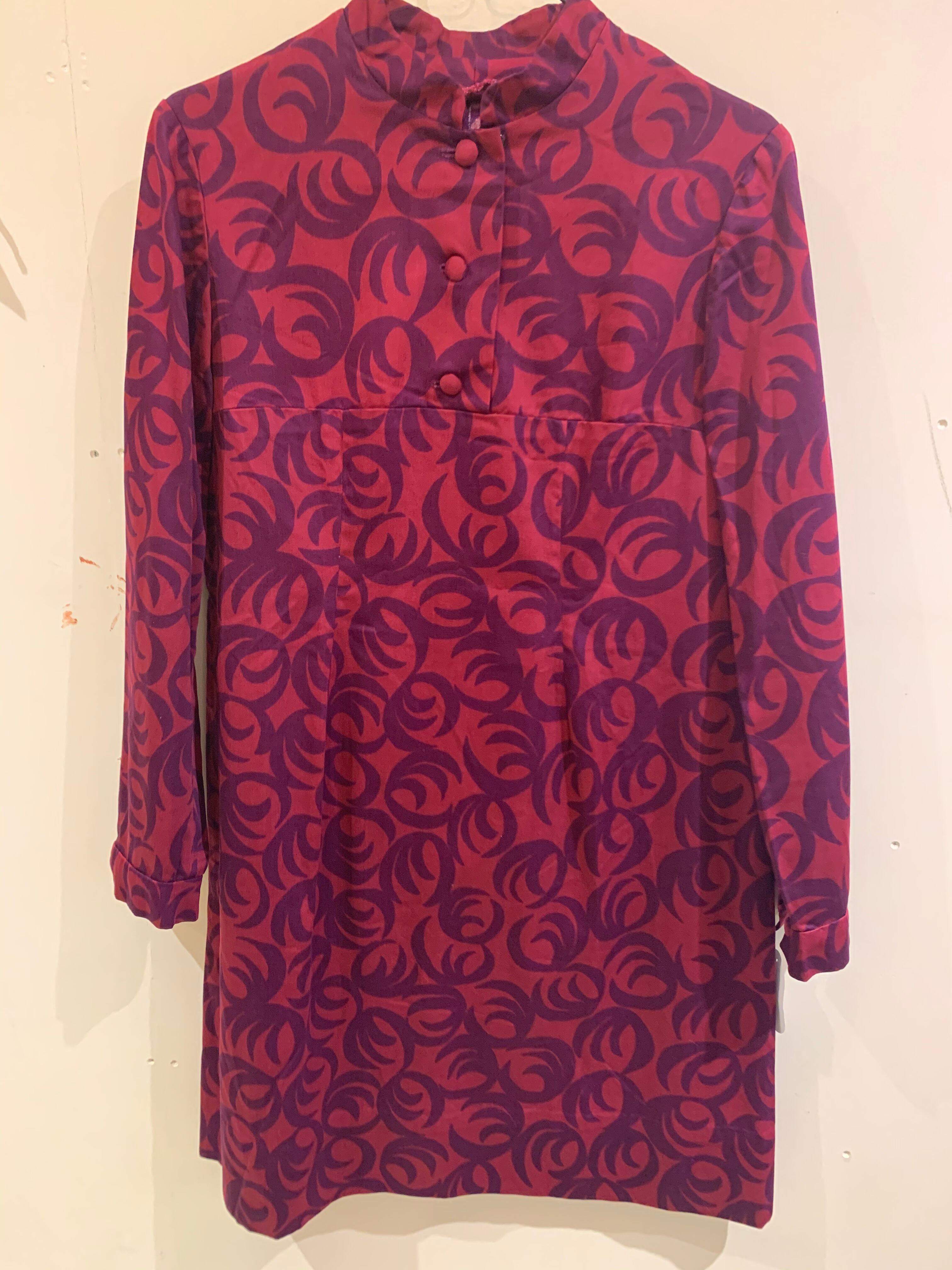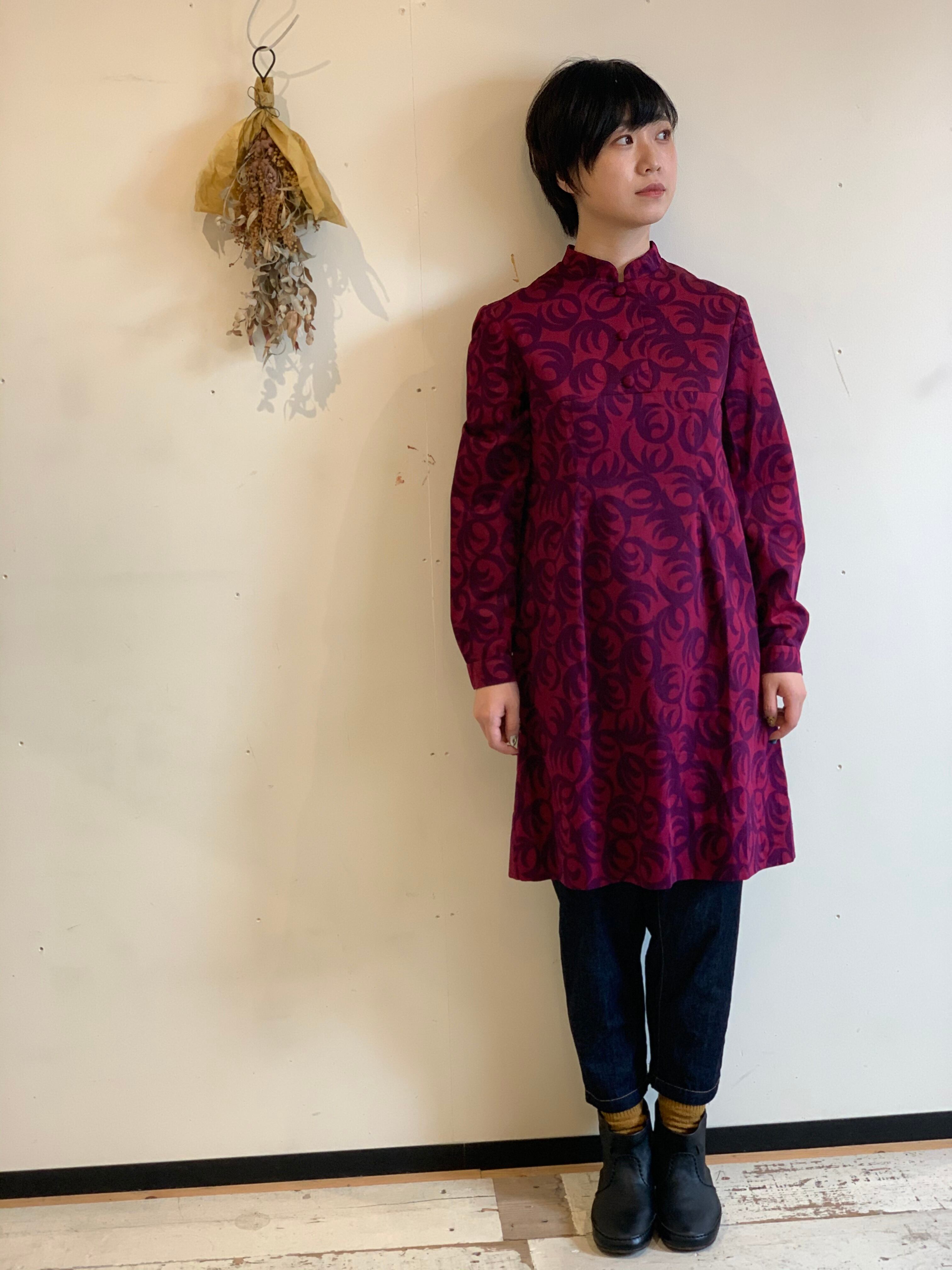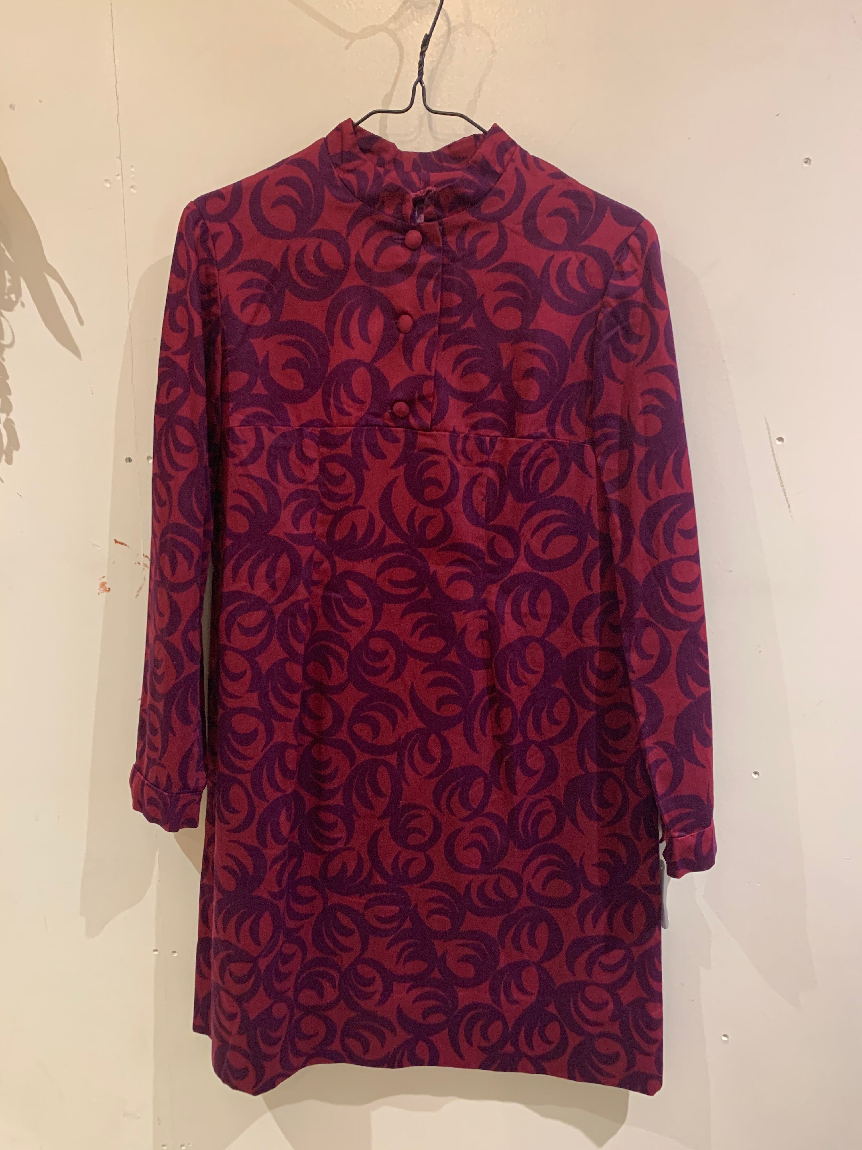 ヴィンテージのマリメッコの生地で手作りされたワンピースです。綺麗な色と素敵な柄が特徴。丈が短いのでパンツと合わせて下さい。
