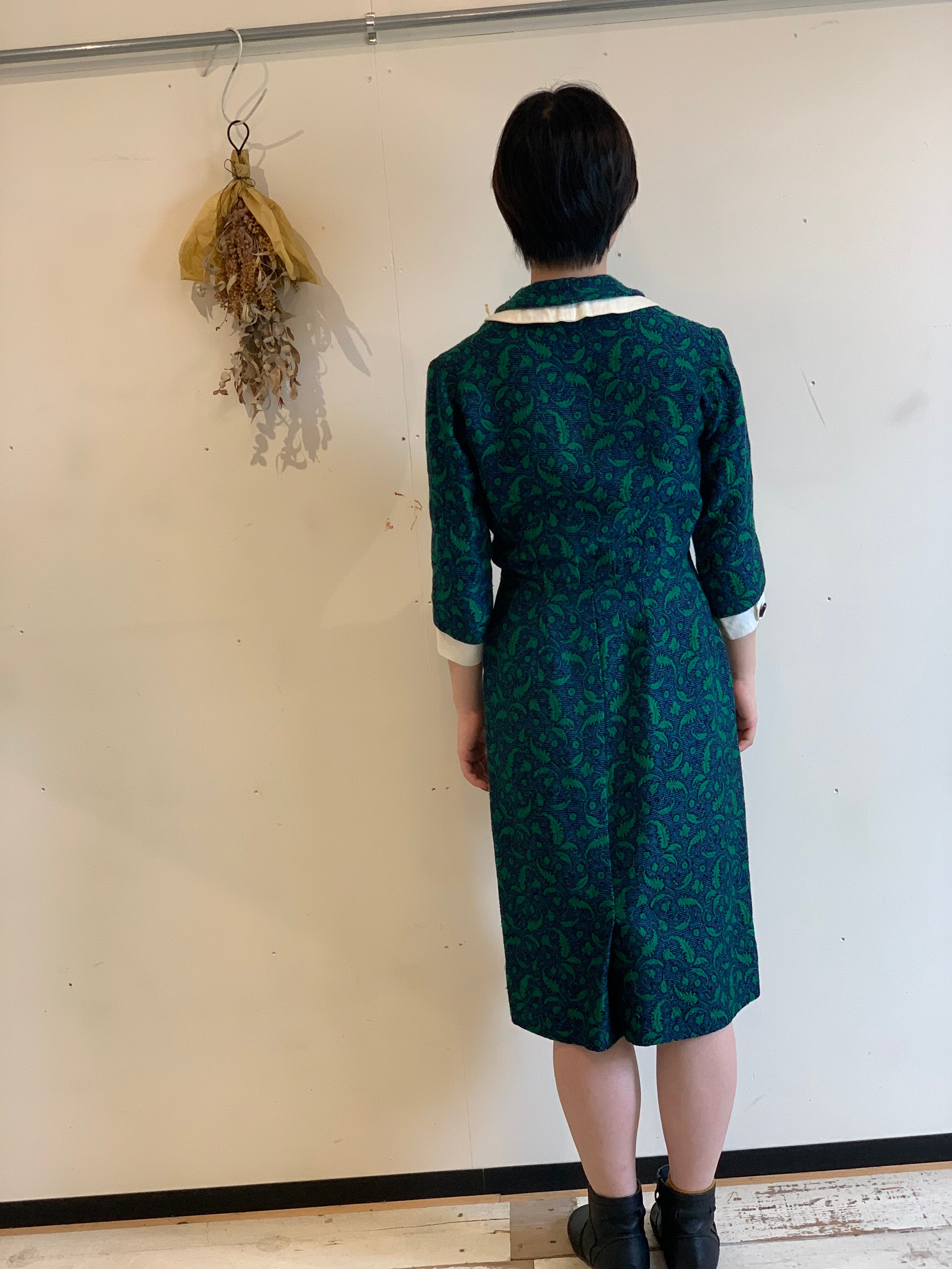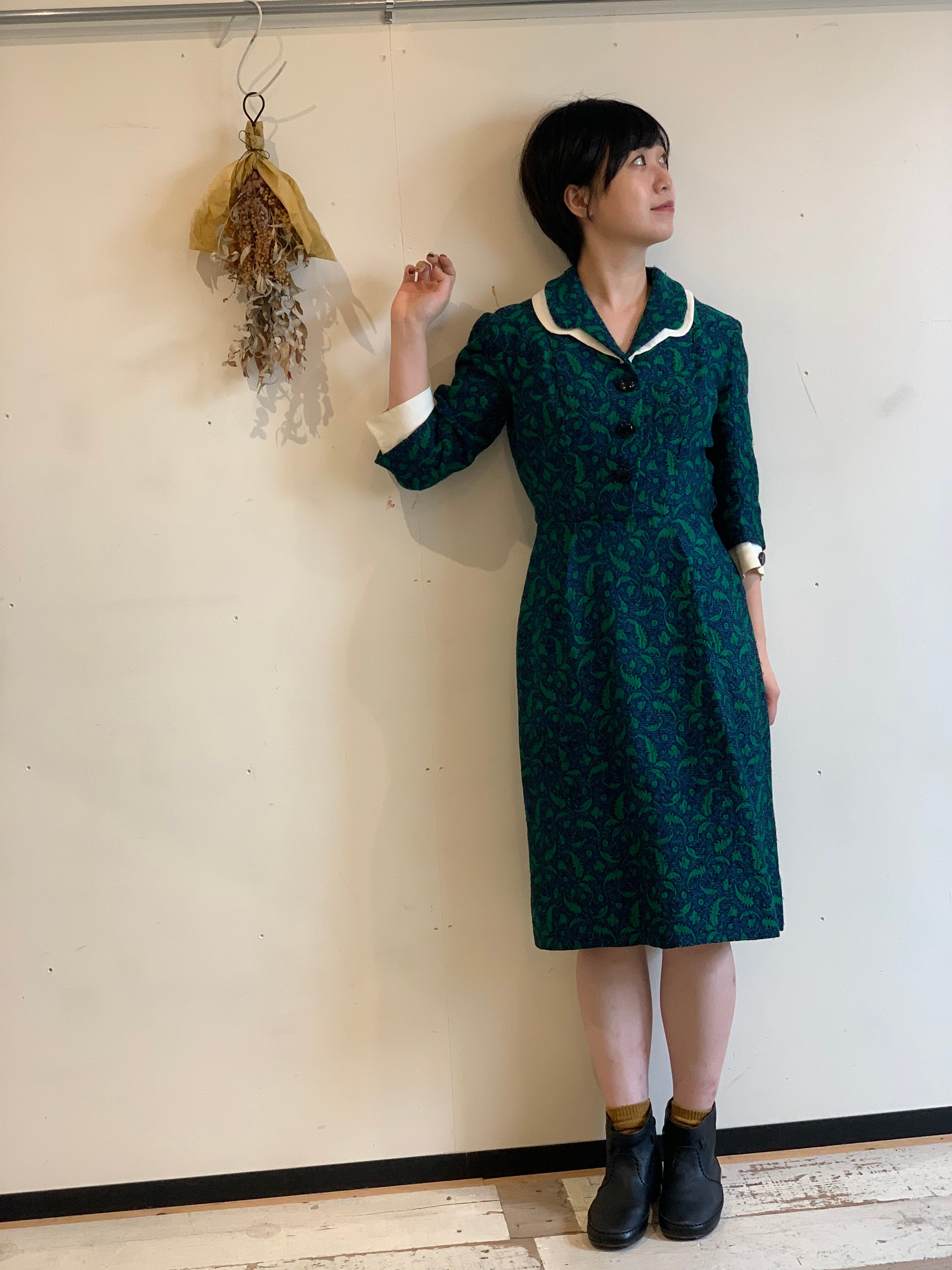 パリのヴィンテージショップで見つけた手作りワンピース。襟袖の部分が二重になっているところがポイントです。袖口は取り外しが出来ます。